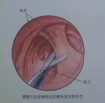 宫腔正常生理状态下是前后壁接触合拢,即使在月经期子宫内膜剥脱时也不会出现粘连,这是因为子宫内膜基底层完整和功能正常。而当子宫内膜的基底层受损时,功能层形成受阻,从而影响到月经,而这些受损的子宫内膜也会被粘连带所取代,子宫内膜腺体变得非常稀少或无活性。